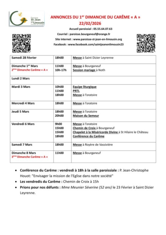 Vous êtes intéressé par les actus de notre paroisse, par celles des autres paroisses de Creuse et de Haute-Vienne, et par celles de notre diocèse ?
