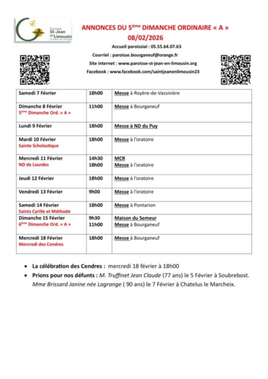 Vous êtes intéressé par les actus de notre paroisse, par celles des autres paroisses de Creuse et de Haute-Vienne, et par celles de notre diocèse ?