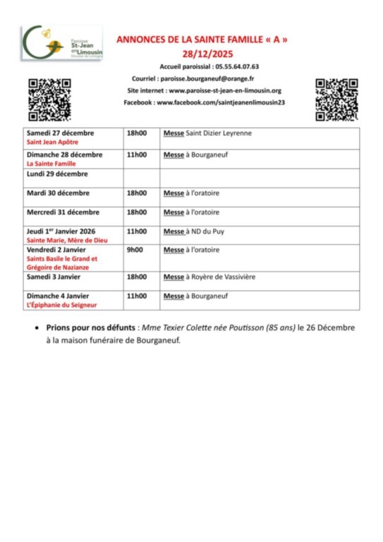 Vous êtes intéressé par les actus de notre paroisse, par celles des autres paroisses de Creuse et de Haute-Vienne, et par celles de notre diocèse ?